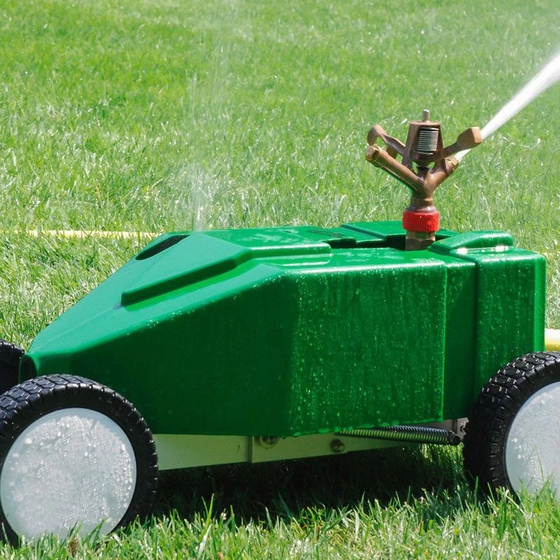 Die Kunststoff-Abdeckhaube für die Beregnungswagen „Regenkönig Turbo“ wird einfach über die Mechanik unterhalb des Schwinghebelregners gestülpt. Sie schützt die Technik gegen Verschmutzung und rundet die Optik des „Regenkönigs“ ab.