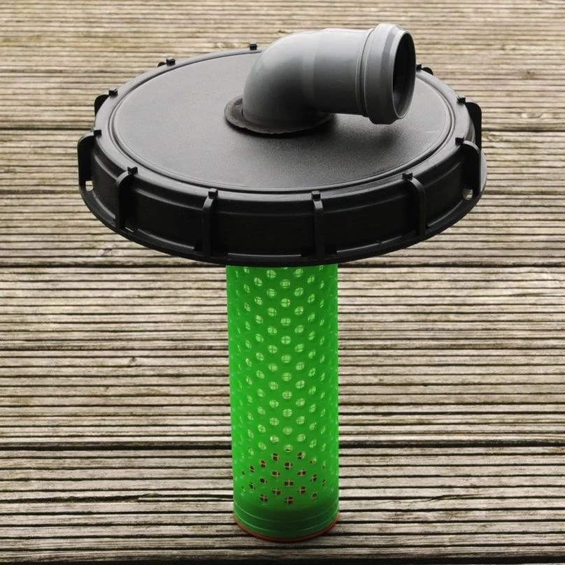Er ist durch die Ausstattung einer Gummimuffe dicht und trotzdem flexibel beweglich. An der Deckelunterseite befindet sich ein Filter mit einer leichten Demontagefähigkeit, der bei Bedarf zur Reinigung entnommen werden kann. Der Deckelfilter ist passend für alle Tanks mit Deckeln von 160/225 mm.