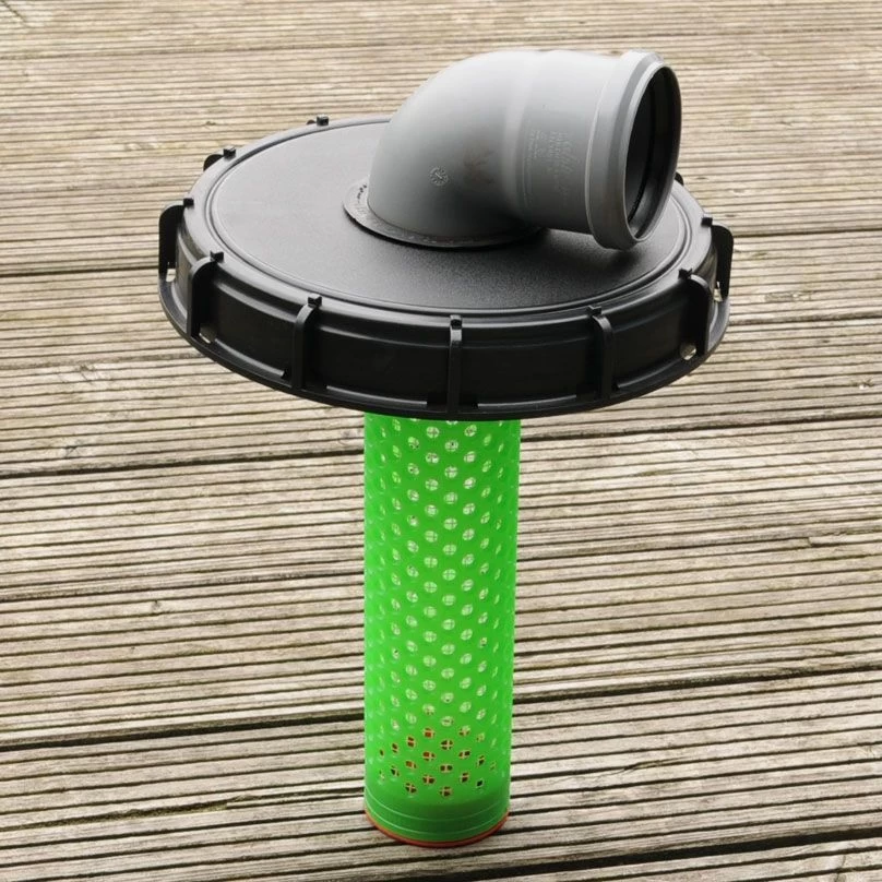 Er ist durch die Ausstattung einer Gummimuffe dicht und trotzdem flexibel beweglich. An der Deckelunterseite befindet sich ein Filter mit einer leichten Demontagefähigkeit, der bei Bedarf zur Reinigung entnommen werden kann. Der Deckelfilter ist passend für alle Tanks mit Deckeln von 160/225 mm.