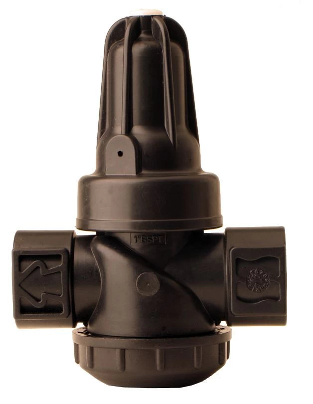 Druckminderer, PP, 1″ Innengewinde, 3,5 – 5,5 bar Ausgangsdruck Material: Kunststoffgehäuse mit Nylongewebe-Membran, Druchfluss: 0,45 – 8,0m³/h, Vordruck 0,15 – 9,0 bar, Ausgangsdruck einstellbar
