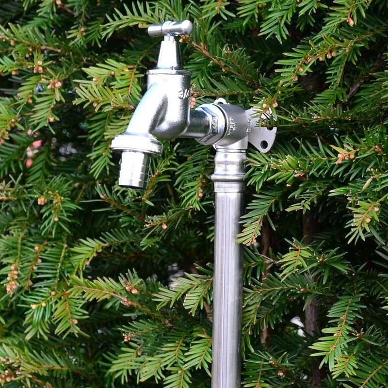 Zapfsäule aus Edelstahl, vormontiert mit Messing Auslaufventil, matt verchromt, Länge 100 cm mit 3/4″ IG