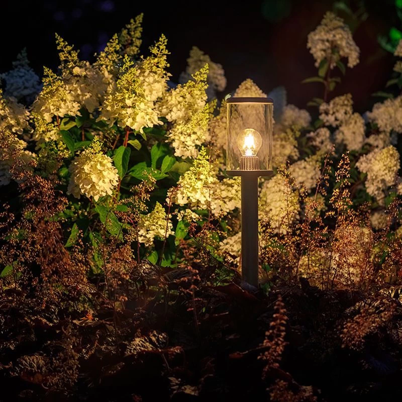 Diese Sockelleuchte ist ein Klassiker in einem modernen Lightpro-Gewand. Die runde Formgebung in Kombination mit dem zylinderförmigen Glas um das Filament-Leuchtmittel verleiht dieser Leuchte eine besondere Ausstrahlung. Platzieren Sie die Eros Hi entlang eines Weges oder zwischen der Bepflanzung, um ein warmes Ambiente in Ihrem Garten zu kreieren.