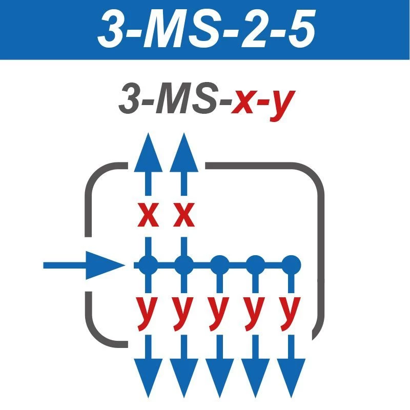 – 2 Ventile in Flussrichtung links, 5 Ventile in Flussrichtung rechts