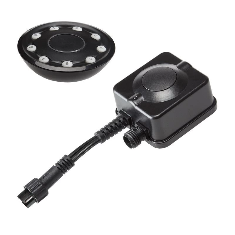 Der schwarze Receiver ist ein Empfänger für die Fernbedienung, an den Sie 9 Lampen anschließen können. Der Empfänger hat ein Maximum von 150 Watt. Mit diesem Kunststoff-Empfänger können Sie Ihre Beleuchtung getrennt einschalten.