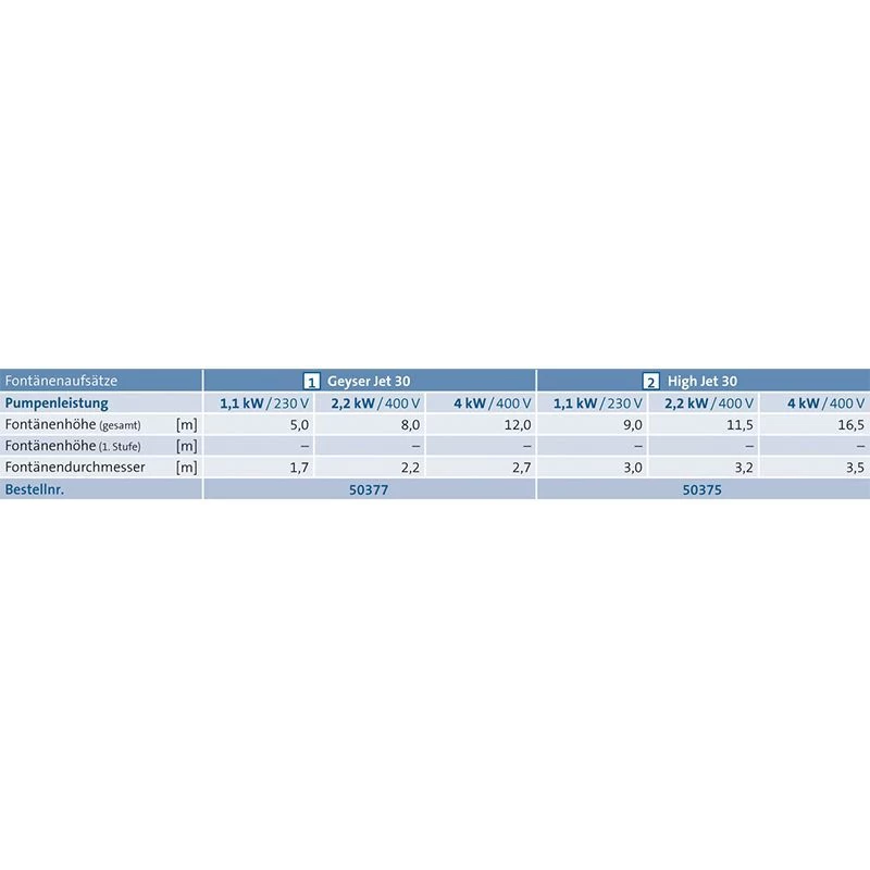 – Fontänendurchmesser: 1,7 m ; 2,7 m