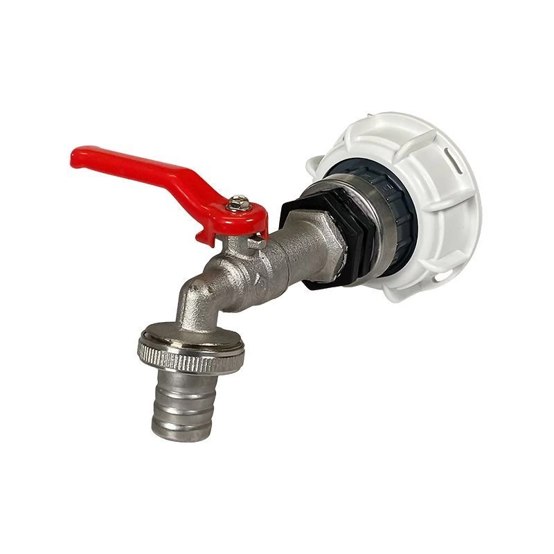 Schlauchanschluss ECO zur einfachen und komfortablen Anbringung an IBC-Regenwassertanks mit Feingewinde. Nach Montage der Adapter haben Sie die Möglichkeit über einen Kugelhahn mit 3/4″ Außengewinde, Wasser aus den Tanks zu entnehmen.