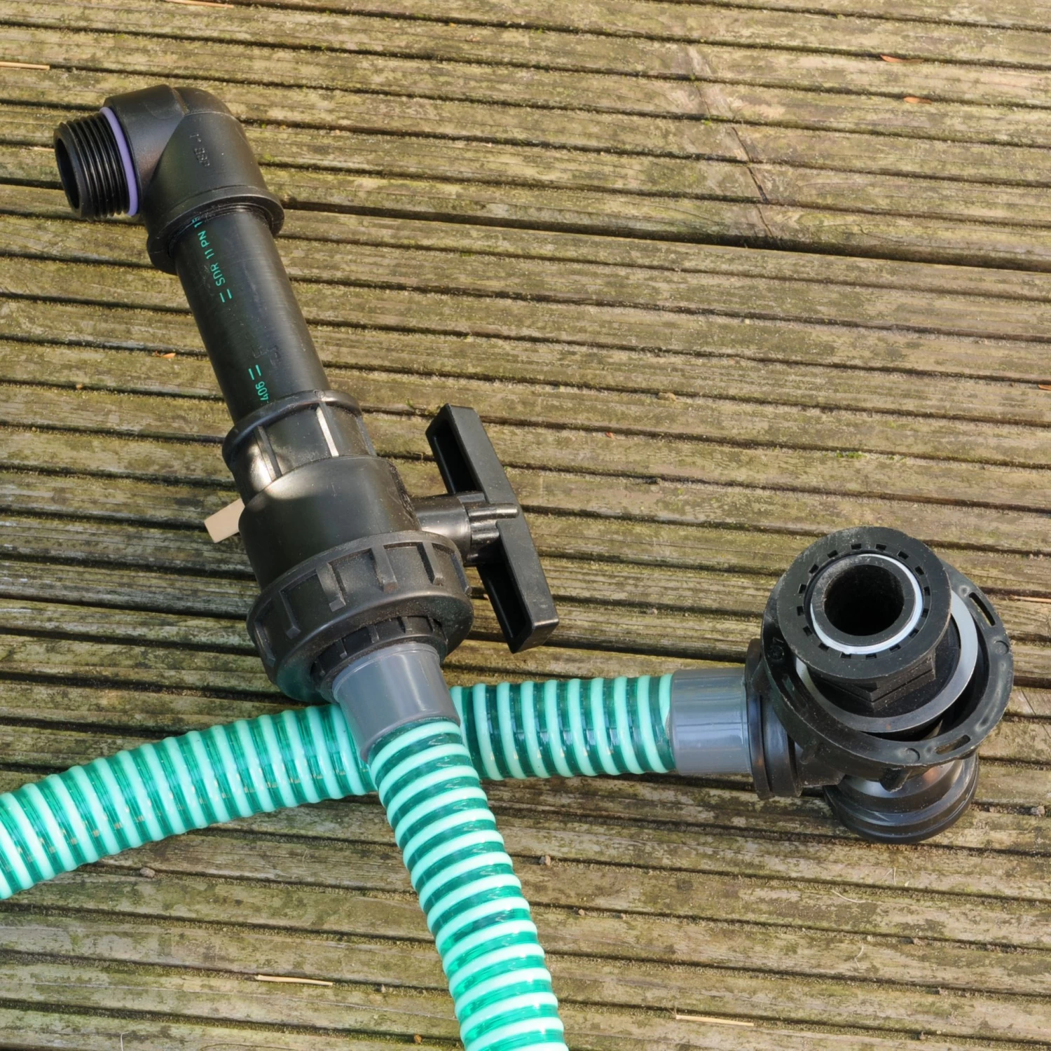 Desweiteren ist er für bis zu 90 % aller Wassertanks passend. Das Auslaufstück der Vorrichtung ist leicht abschraubbar und zum Anschluss einer Pumpe oder eines Gartenschlauches geeignet. Die Vorrichtung ist mit einem 1 m knickfreien 1″ Schlauch und einem 1″ Kugelhahn ausgestattet.