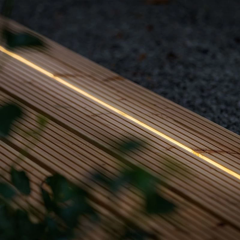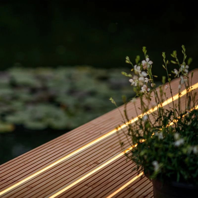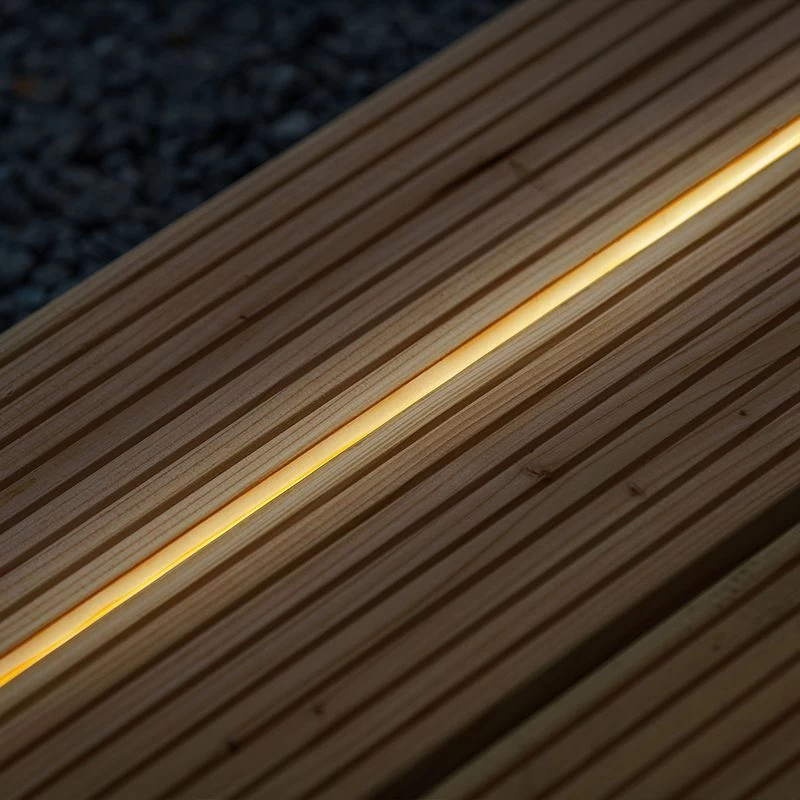 Der Led-Streifen von Lightpro ist aus Kunststoff hergestellt, er ist vielseitig einsetzbar und gibt ein warmes Licht. Ein Led-Streifen ist ideal für Treppen, Ränder oder auch in Überdachungen, diese Beleuchtung erhöht die Sicherheit auf einfache Weise und erzeugt eine gemütliche Atmosphäre in Ihrem Garten. Der Led-Streifen ist 15 m lang und Sie können den Led-Streifen selbst einkürzen und so die Länge des Streifens selbst festlegen. Der Led-Streifen verbraucht 2,2 W pro Meter. Der Led Streifen-Verbinder ist separat erhältlich.