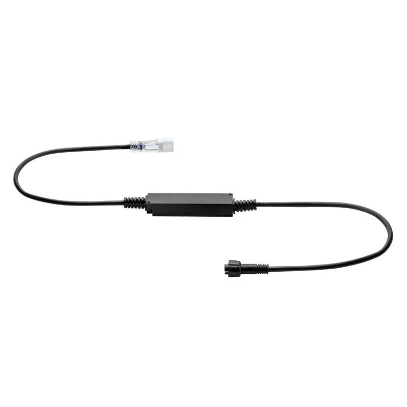Der Led-Streifen-Anschluss wird benötigt, um den Led-Streifen anzuschlieĂen. ADer Anschluss ist mit einem 1 m langen Kabel verbunden mit einem M-Verbinder am anderen Ende. Mithilfe der mitgelieferte F-Verbinder kann der Led-Streifen dann angeschlossen werden.
