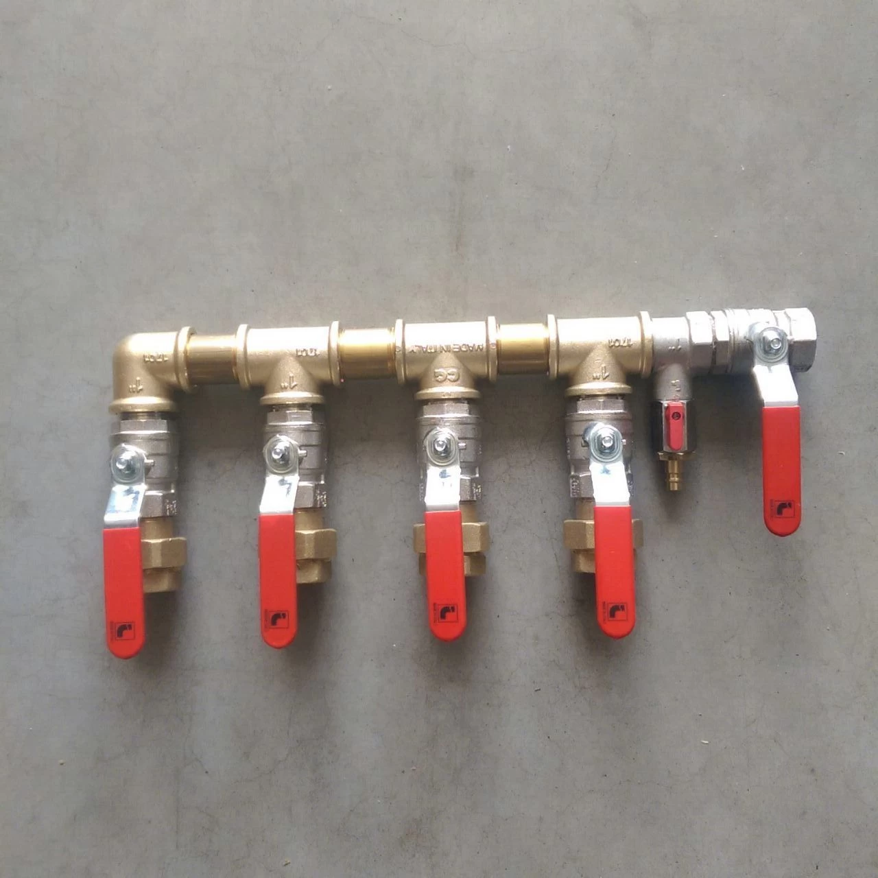 Ventilverteiler,mit 4 Kugelhähnen anschlussfertig montiert mit Messing-Überwurfverschraubungen 1″ Innengewinde