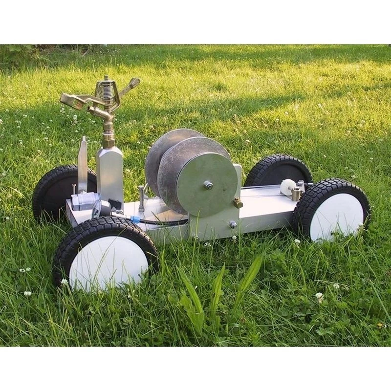 Überlastungsschutz und Abstellautomatik am Seilende sorgen für sichern Betrieb. Betriebsdruck 2,5-7 bar. Alu-Turbinenantrieb. Bodenhering zur Seilbefestigung. Edelstahl-Seillänge: 90 m.