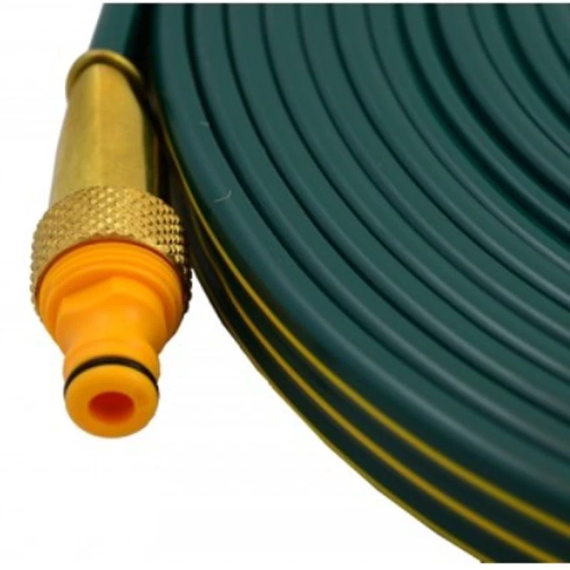 Der hochwertige Drei-Kammer-Sprühschlauch von Tricoflex wird aus robustem PVC-Material gefertigt. Er kann zur pflanzenschonenden Bewässerung von Hecken, Beeten und Rasenflächen im Privatgarten eignesetzt werden. Die Beregnungsfläche liegt bei 100 qm bei 3 bar Wasserdruck. Der Anschluss erfolgt über eine Kunststoff-Quick-Klickkupplung. Der Schlauch kann bis auf max. 30 m verlängert werden.