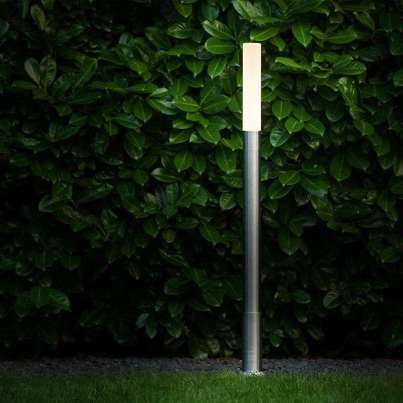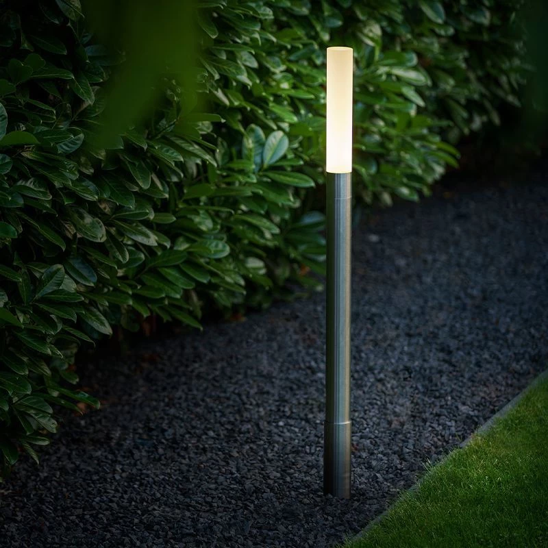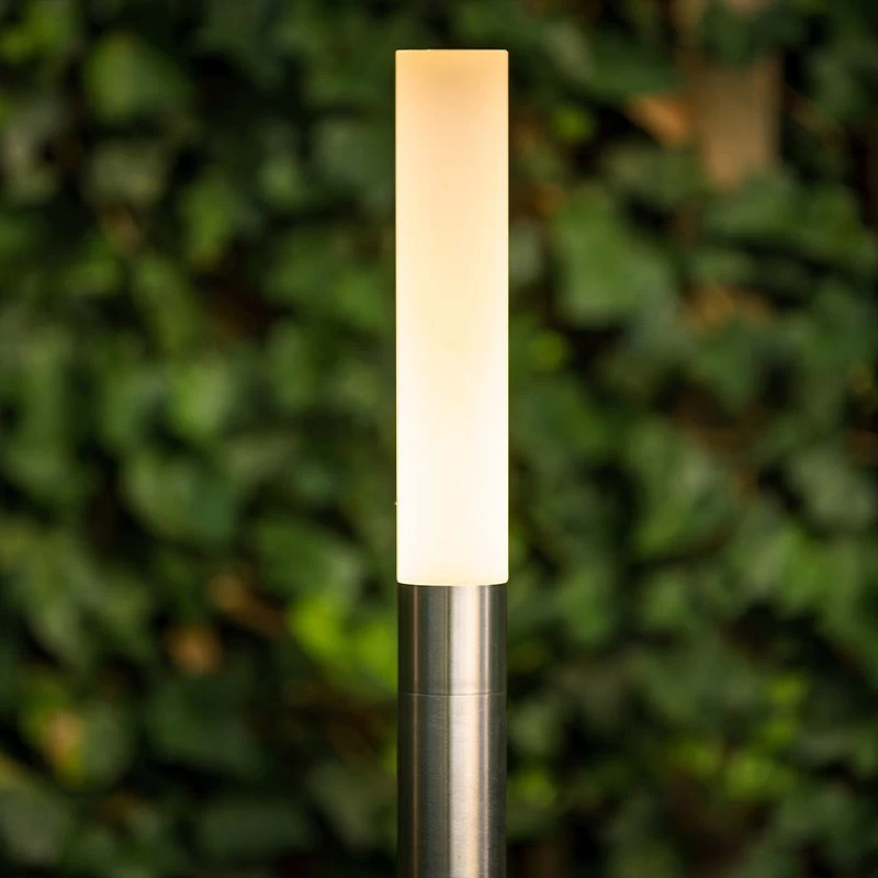 Die Nodin hat einen Verbrauch von 3W und ist 102 cm hoch. Sie ist aus Edelstahl gefertigt und verfügt über eine warmweiße Lichtquelle. Diese Sockelleuchte ist ideal für den Einsatz als Orientierungslicht geeignet. Zum Beispiel kann die Nodin entlang eines Pfades eingesetzt werden. So wird auch im Dunkeln die Tiefe des Gartens gut betont. Wir empfehlen die Nina für niedrigere Pflanzen und die Nodin für höhere Pflanzen.