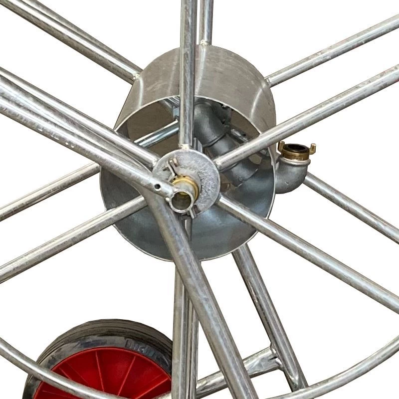 Dieses Aufrüstungs-Set ist die sinnvolle Ergänzung zu den Beregnungswagen. Der Schlauchwagen wird mit dem beiliegenden Gestänge hinter dem Beregnungswagen