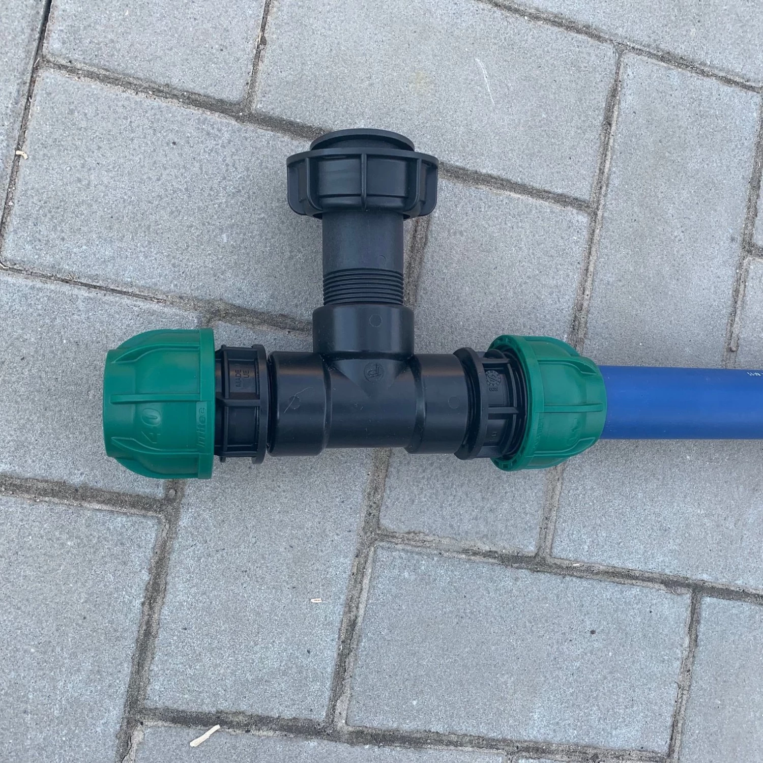Sie sind dafür konstruiert, nebeneinanderstehende Wassertanks zu verbinden. Die Verbindungen besitzen einen PP 40 mm x Überwurf 55 mm und bestehen aus einem PE-Rohr mit T-Stück.