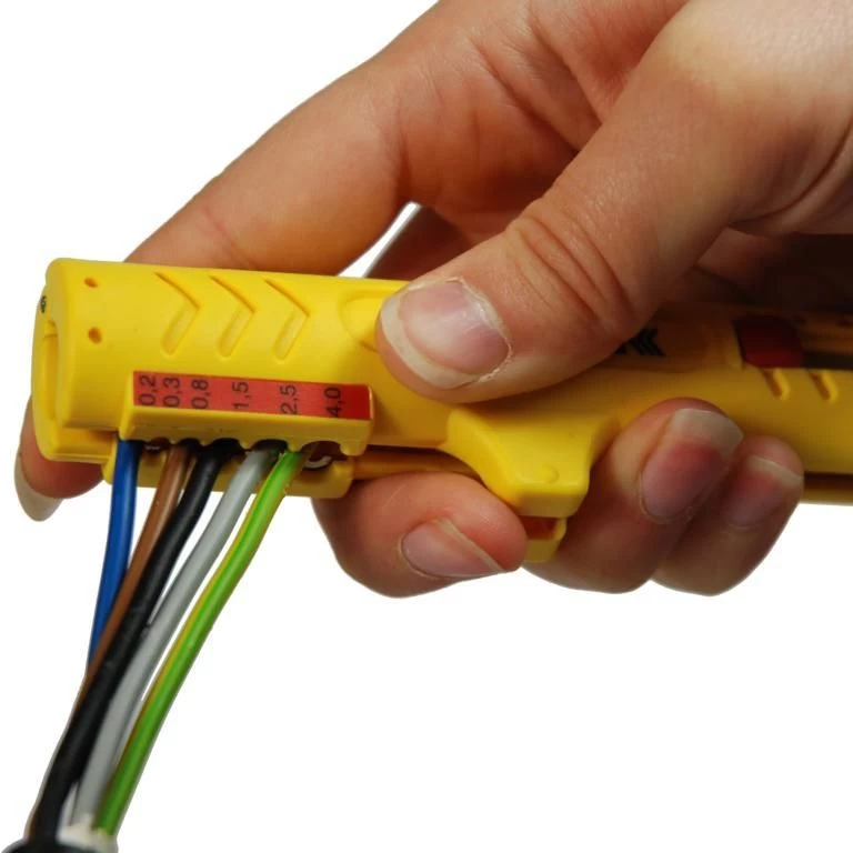 – Abisolieren von verschiedenen Kabeltypen, z.B. NYM 3 x 1,5 mm² bis 5 x 2,5 mm²,