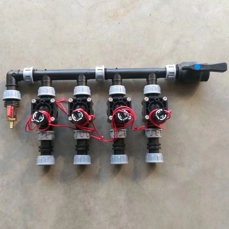 4-er Ventilverteilung zur Wandmontage mit Hunterventil mit PP Übergangsverschraubung.