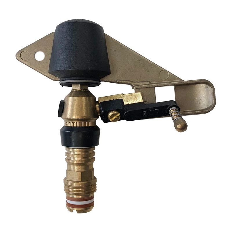 Schwinghebelregner ZA7D, PERROT, ½“ Außengewinde, zweidüsig, Vollkreis mit 4,0 mm Standarddüse und Nahbereichsdüse, Wurfweite: 8,0 – 11,2 m, Durchfluß: 0,69 – 1,96 m³/h, Betriebsdruck: 2,5 – 4,5 bar, Strahlanstieg: 7°, mit Federschutzkappe , Düse mit Strahlstörer zum Variieren der Wurfweite und Wasserverteilung