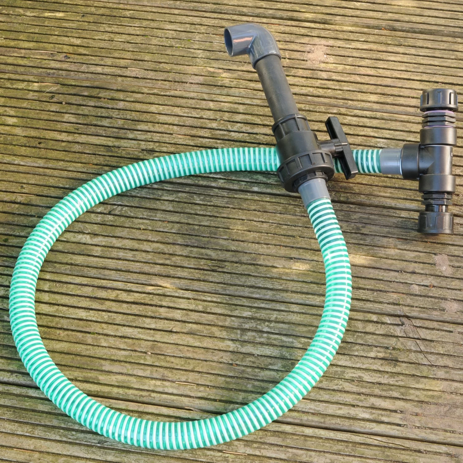 Desweiteren ist er für bis zu 90 % aller Wassertanks passend. Das Auslaufstück der Vorrichtung ist leicht abschraubbar und zum Anschluss einer Pumpe oder eines Gartenschlauches geeignet. Die Vorrichtung ist mit einem 1 m knickfreien 1″ Schlauch und einem 1″ Kugelhahn ausgestattet.